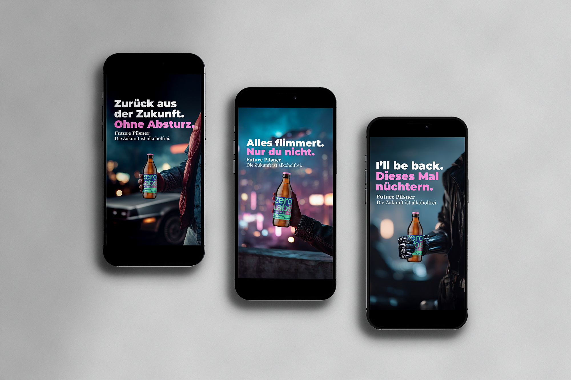 zeroLabs is a bold new startup brewing alcohol-free beer that actually tastes good. To launch their latest creation, Future Pilsner, we teamed up with AI to build a look straight out of a sci-fi universe. With visual cues from tech and pop culture and headlines that cut through the noise, we made one thing clear: the future is alcohol-free. And yes, it tastes good. We launched with a fake OOH campaign on LinkedIn and social ads on Meta. Zero sugar, zero alcohol, zero regrets.